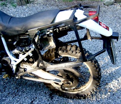 aus Vierkantstahlrohr (ca. 7-8 kg), die an sechs Punkten am Motorrad befestigt