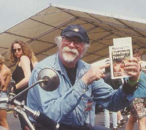 the German Harley-Davidson Meeting in 1994 showing Bernd Teschs Book. Leider ist dieser Motorrad-Traveller-Freund verstorben.