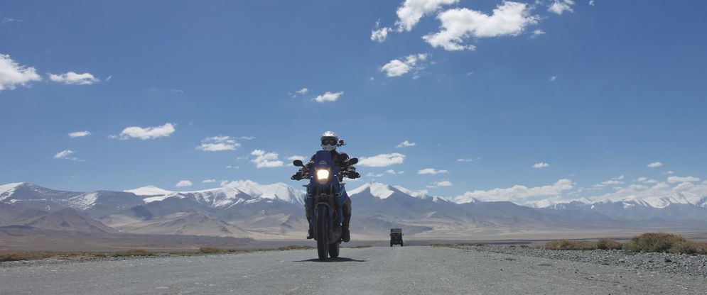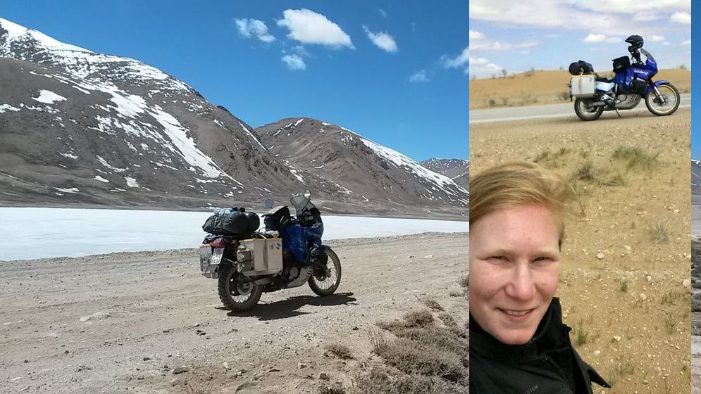 Susanne schreibt: Mein liebstes Foto mit Motorrad unterwegs ... ich vermisse gerade sehr die Weite und Natürlichkeit. Tibet am Ufer des heiligen Sees Manasarovar gegenüber des Kailash. 4.600 m Höhe. Teil 1: 25.03.2013 - 22.12.2013 ---------------------