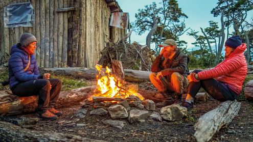 L: Warme Abende und Gespräche am Feuer geniessen. R: Kalte Nächte mit guter Ausrüstung meistern.