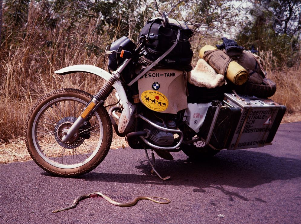 | Crowdfunding: https://gofund.me/dd174ff6 Möchtest Du das erste BMW-Fernreise-Motorrad, die Tesch-BMW R 80 G/S, mit für ein Museum erhalten? Das wäre schön! Beim Link gibt es ein schönes Youtube-Video + mehr Text. Bitte dort spenden und oft teilen! DANKE sagt BT. Foto: Bernd Tesch 1986 solo unterwegs in Afrika in Guinea Conakry. Die Schlange war schon tot. Habe sie nur gebraten. ![]() |