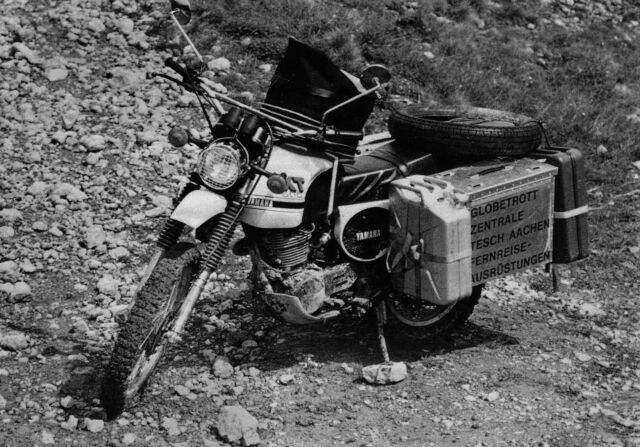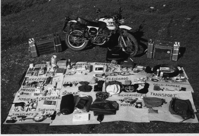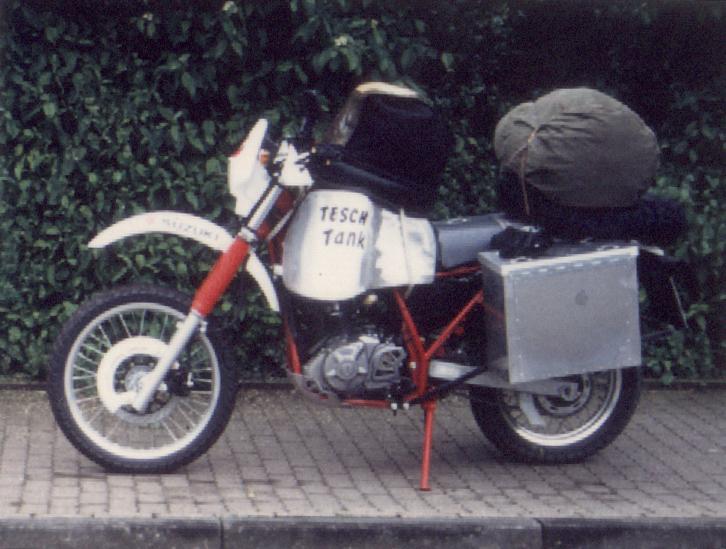 Bernd Tesch Tesch-BMW R 80 G/S 80/100 GS with "Tesch-Travel-Träger = steel rack" and "Tesch-Travel-Tasche = alubox". Ready packed for Motorcycle-World-Travels | Foto: