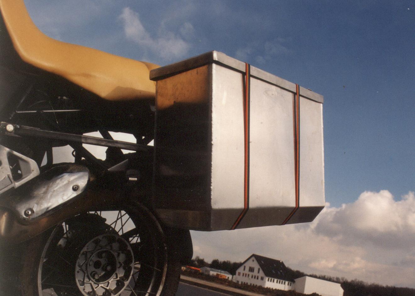 Bernd Tesch with "Tesch-Travel-Träger = steel rack" and "Tesch-Travel-Tasche No. 4 = alubox" on a Tesch-BMW R 1100 GS | ||