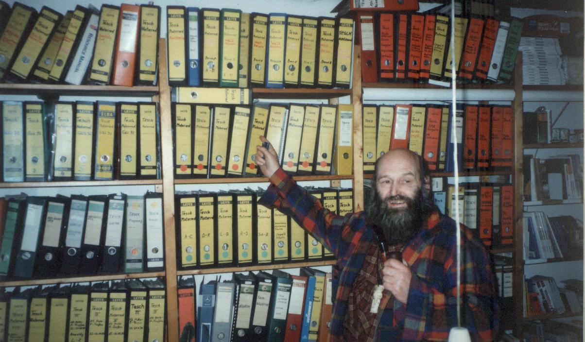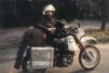 Bernd Tesch with "Tesch-Travel-Träger = steel rack" and "Tesch-Travel-Tasche = alubox" on Tesch-BMW R 80 / 100 GS with World-Travel-Equipment. |