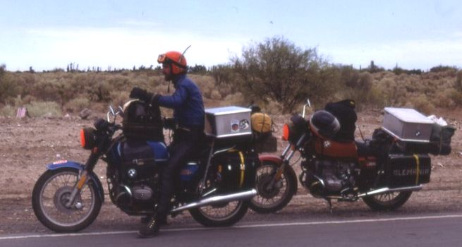 + South-America. The students Elmar and Klaus planned to stay 3 months in South America with 2 BMWs (R60/6 und R 65). But the tour finally was 9,5 Months and 35.000 km. The reasons that we extended the tour were that we enjoyed the time in South America, the journey was much cheaper than expected and we had not obligation at home. Elmar had finished his education and Klaus started his study again.