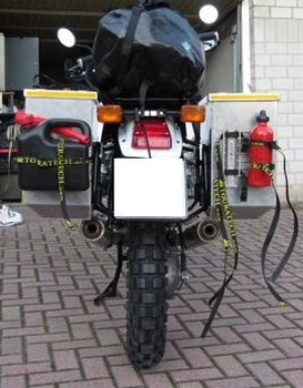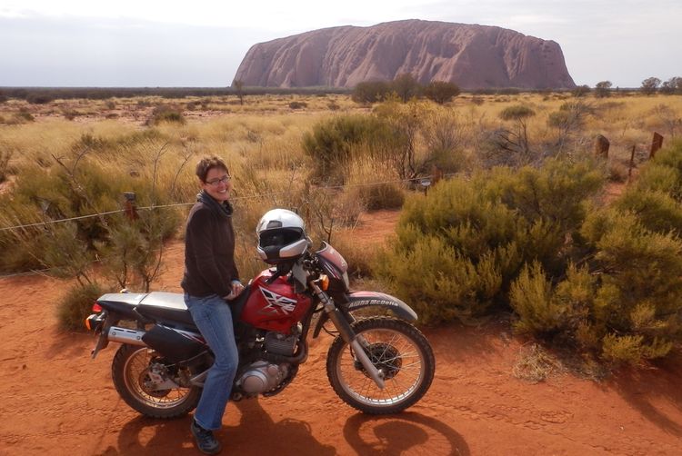 with a SUZUKI DR 650 (of 1996. Start 11.500 km). She made it and arrived 21 months later in Australia.
