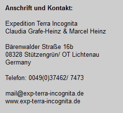 Marcel Heinz (10.1979) + Claudia Grafe-Heinz (born 05.1980 in Leipzig) www.exp-terra-incognita.de http://home.arcor.de/grafe.wir/expterraincognita/neu/start.htm