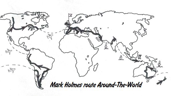 Route: England – ferry to: France – Germany – Austria – Italy – Slovenia – Croatia – Montenegro – Albania – Montenegro - Greece – Turkey – Syria – Turkey – Iran – Pakistan – India – Nepal – airfreight to: Thailand – Cambodia – Laos – Thailand – Malaysia – seafreight to: New Zealand – airfreight to: Australia – seafreight to: East Timor – Indonesia – seafreight to: Malaysia – Singapore - seafreight to: Chile – Argentina – Uruguay – Brazil – Paraguay – Argentina – Chile – Argentina – Bolivia – Peru – Seafreight BMW to Germany; fly to USA and purchase Suzuki DR650 - USA(inc Alaska) – Canada – USA – Mexico – Belize – Guatemala – El Salvador – Honduras – Nicaragua – Costa Rica – Panama – Colombia – Ecuador – Peru – Bolivia – Chile – Argentina – Chile – Bolivia – Brazil – French Guiana – Suriname – Guyana – Brazil – Venezuela....