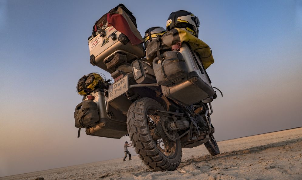 AG: Well, I just love to travel on the bike. I’ve been doing this for nine years before the world trip. When I came back from [my second trip to] India, I decided, “Why not make something global?” At first it was like a crazy idea, and I was scared of it: “No, I can’t do that. It’s so dangerous and so difficult. It’s not just one month’s travel – a few weeks.”