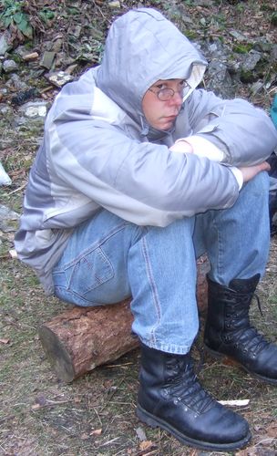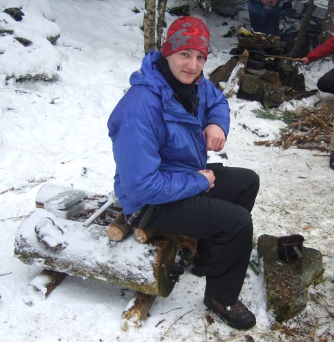 kannst du ein Feuer (oder Langfeuer) mit Baumreflektor zur Hütte hin bauen. Vorsicht ist bei der Windrichtung des Qualms geboten! Später heiße Steine mit in die Hütte nehmen.